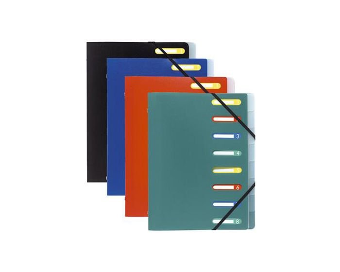 Trieur de Bureau VIQUEL en polypropylène 8 compartiments à 3 rabats avec élastiques