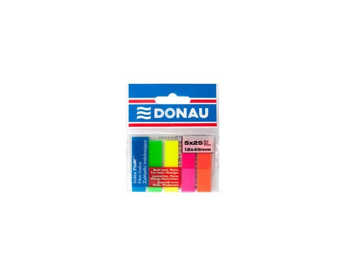 Lot de 12 Pochettes de 125 Index marques-pages DONAU 12×45 mm (5 Coul Fluo)