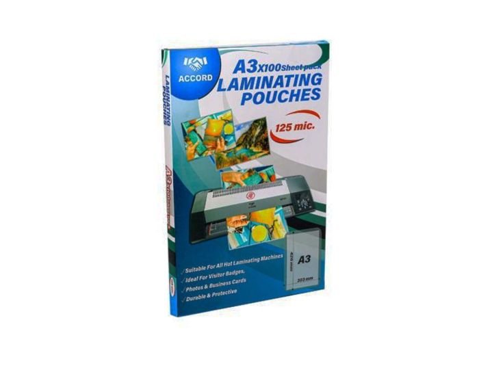 Paquet de 100 pochettes de plastification ACCORD A3 125 microns 426*303 mm