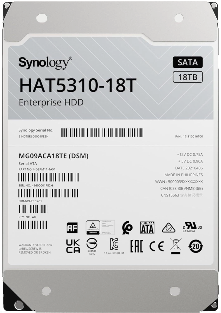 Disque dur interne Synology HAT5300 SATA 3,5 » Série Enterprise HDD 18 To pour NAS (HAT5310-18T)