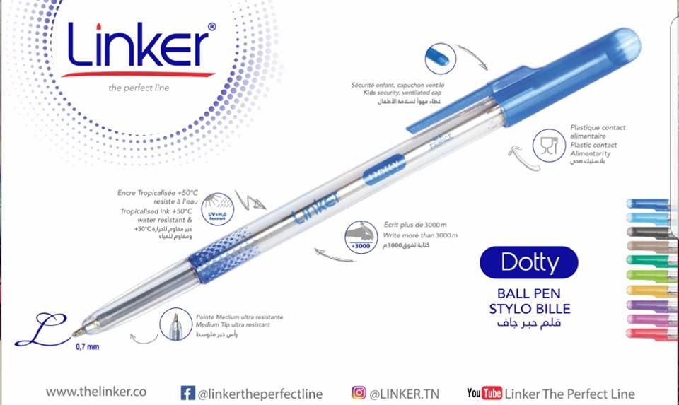 Le stylo Linker Dotty possède une pointe medium ultra résistante et une encre adaptée aux climats chauds et humides qui résiste à plus de 50°C.