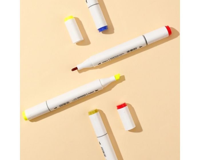 • Marqueur à croquis double pointe : Chaque marqueur dispose de deux types de pointes, une fine pour les détails et une large pour les aplats.