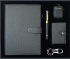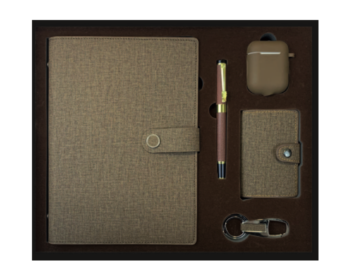 En plus de l’agenda, le coffret contient des accessoires essentiels : écouteurs sans fil, stylo élégant, porte-carte de visite et porte-clé. Un choix parfait pour un cadeau d’affaires ou pour accompagner le quotidien avec style et efficacité.