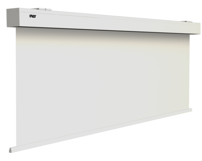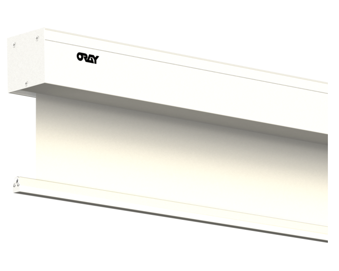 Écran ORAY SQUAR’PRO, allie élégance et fonctionnalité. Son carter blanc en aluminium se fond discrètement dans tout espace. La surface de projection M1 garantit sécurité et qualité d’image. Installation facile avec pattes coulissantes, fixation murale/plafond. Moteur silencieux, fins de course pré-réglées. Une solution compacte, idéale pour des présentations professionnelles sans compromis.