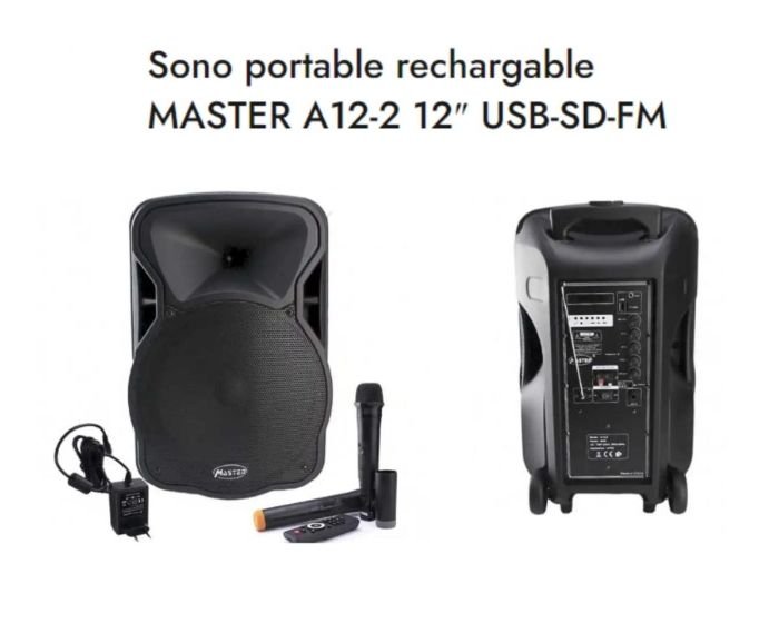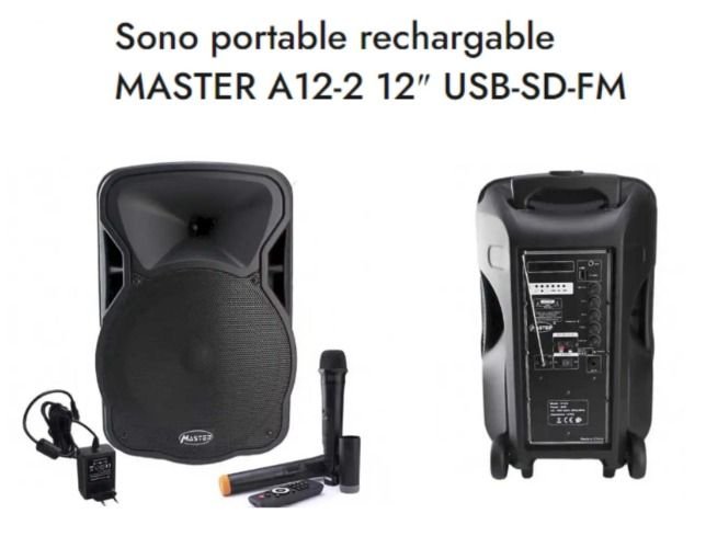 La sono portable MASTER A12-2 est une solution audio complète et mobile, conçue pour vous accompagner partout avec puissance et polyvalence. Dotée d’un haut-parleur de 12 pouces, elle délivre un son clair et puissant, parfait pour les animations, les conférences, les fêtes ou encore les séances de karaoké.