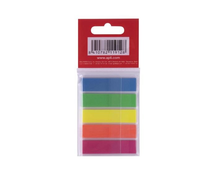 – 5 couleurs fluos assorties : Bleu-Vert-Jaune-Orange-Rose