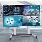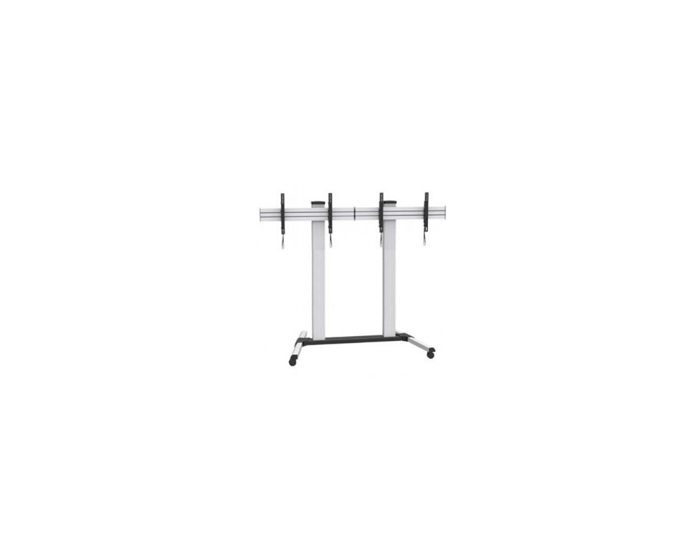 Meuble mobile haut de gamme avec roulettes et ajustement hauteur/inclinaison pour un seul écran de taille 75 à 130 pouces ou bien 2 écrans de taille de 2×40 à 2×75 pouces