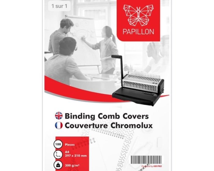 Les couvertures pour reliure Chromolux Papillon sont conçues pour répondre aux besoins des professionnels cherchant à présenter leurs documents de manière soignée et élégante. Avec leur finition de haute qualité, ces couvertures assurent une protection durable et un aspect raffiné à vos projets. Elles sont idéales pour la reliure à anneaux, grâce à leur compatibilité parfaite avec les machines de reliure dotées d’un système de peignes plastiques.